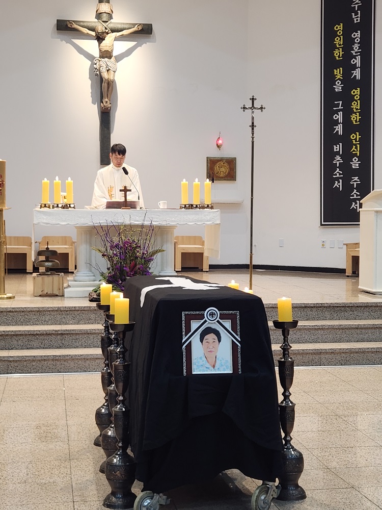 장은자마리아 자매님 장례미사(2026년 3월 2일) 페이지 정보 작성자 우이성당 댓글 댓글 0건 조회Hit 192회 작성일Date 26-03-06 21:03 본문 장은자 마리아 자매님 장례미사 선종일시 : 2월 27일(금) 오후4시 장례미사 : 3월 3일(월) 오전8시 상주 : 박준수 구역 : 10구역 2반 목록 이전글2026본당 공동체 평신도 신앙 아카데미 (2026년 3월 8일) 26.03.10 다음글현영자마리아 자매님 장례미사(2026년 2월 28일) 26.03.06