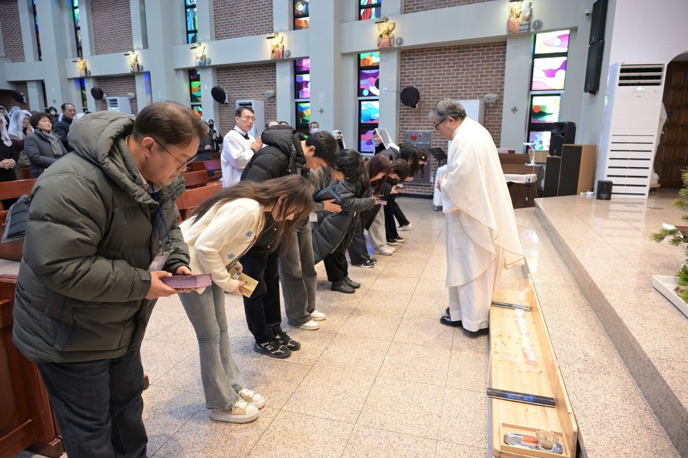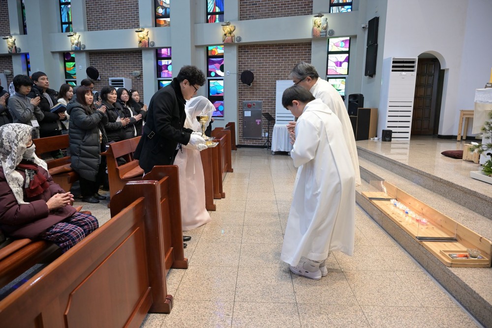 주님 세례 축일(예비신자 받아들이는 예식) (2026년 1월 11일) 페이지 정보 작성자 우이성당2 댓글 댓글 0건 조회Hit 42회 작성일Date 26-01-11 18:36 본문 '주님이 세례를 받으시자 하늘이 열렸네. 성령이 비둘기처럼 그분 위에 머무르시고, 아버지의 목소리가 들려왔네. 이는 내가 사랑하는 아들, 내 마음에 드는 아들이다.' (마태 3,16~17) 주님 세례 축일 교중 미사 중 예비신자 받아들이는 예식이 있었습니다. 김서영, 김종숙, 김서희, 이미정, 이선재, 최유정, 조성규, 변초희 여덟분의 예비신자분들께서 하느님의 자녀로 새로 태어 날 수 있도록 많은 기도와 격려 부탁드립니다. 목록 다음글주님 공현 대축일 (2026년 1월 4일) 26.01.04