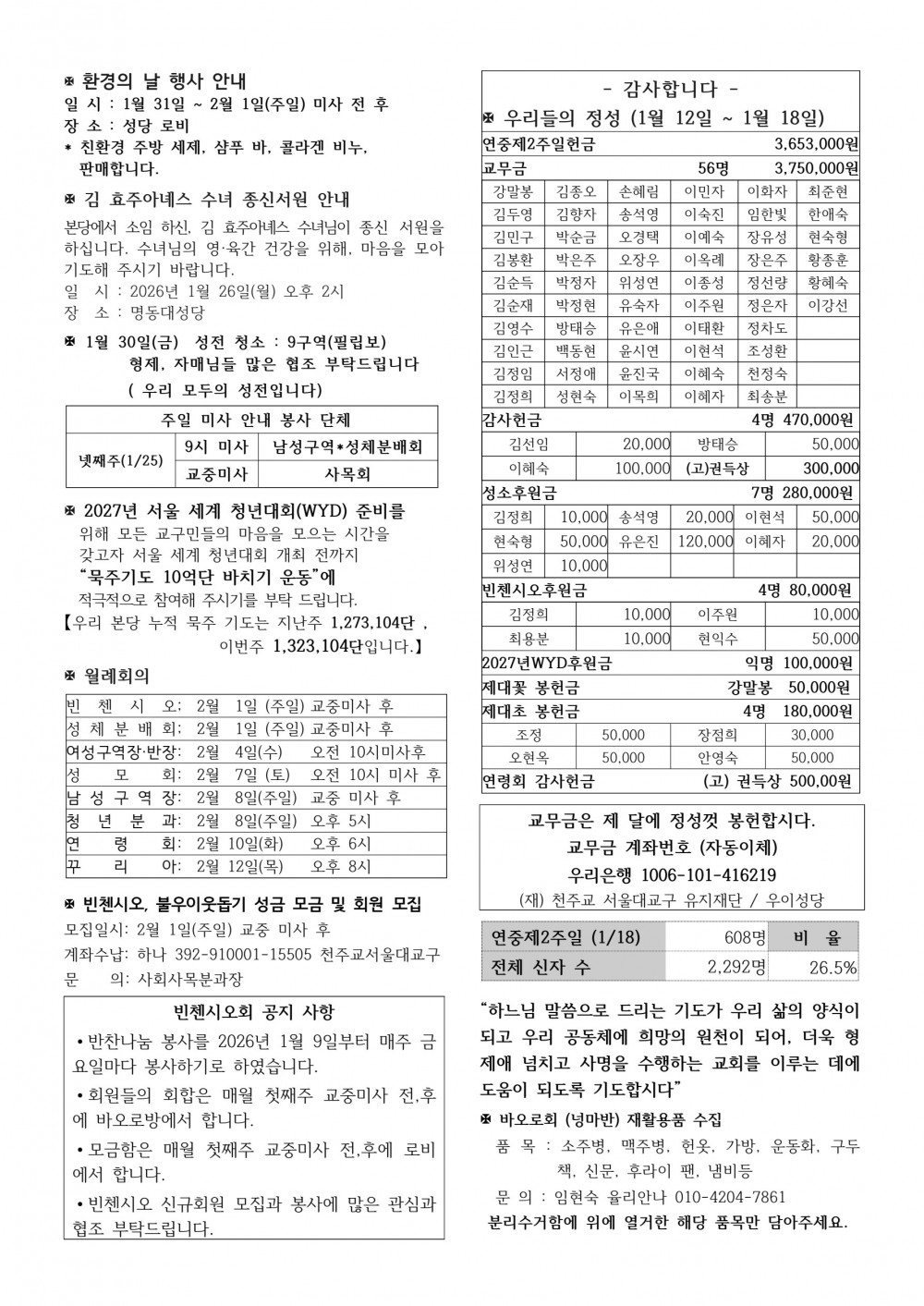 우이주보1234호-2026.01.25 페이지 정보 작성자 우이성당 댓글 댓글 0건 조회Hit 18회 작성일Date 26-01-23 08:53 본문 연중 제3주일 목록 다음글우이주보1233호-2026.01.18 26.01.18