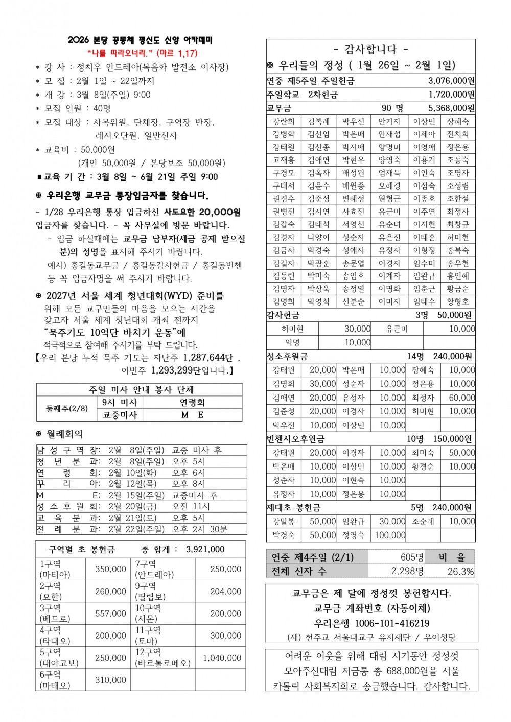 우이주보1236호-2026.02.08 페이지 정보 작성자 우이성당 댓글 댓글 0건 조회Hit 68회 작성일Date 26-02-06 15:33 본문 연중 제5주일 목록 다음글우이주보1235호-2026.02.01 26.01.30
