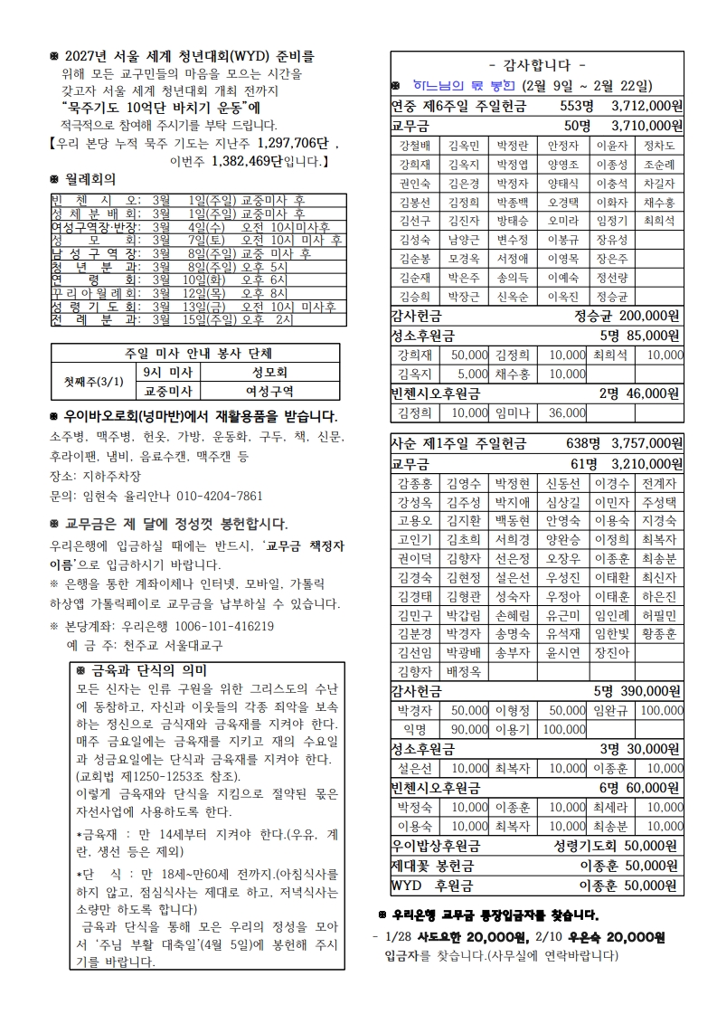 우이주보1239호-2026.03.01 페이지 정보 작성자 우이성당 댓글 댓글 0건 조회Hit 153회 작성일Date 26-02-27 14:55 본문 사순 제2주일 목록 이전글우이주보1240호-2026.03.08 26.03.06 다음글우이주보1238호-2026.02.22 26.02.20