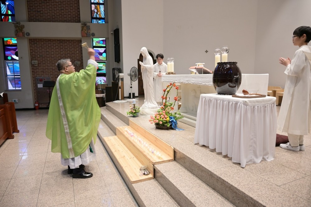 성수가 일반적인 물과 다른 점은 사제가 축성하였다는 것입니다.