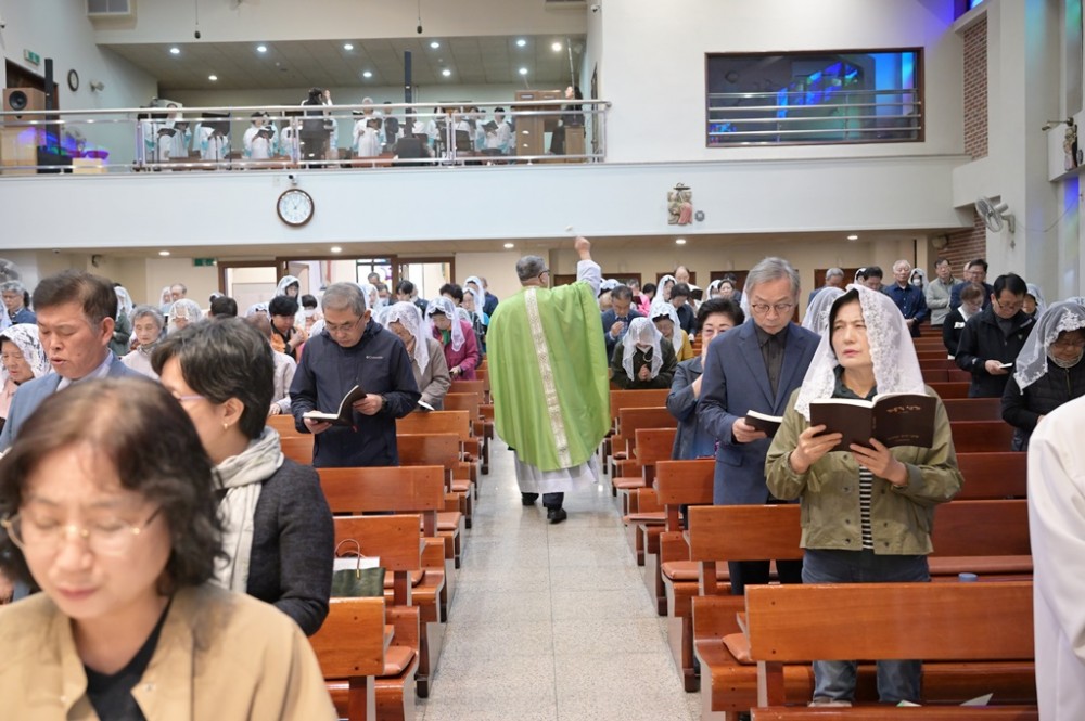 우리는 성수대에 손을 담가 찍은 후 그 물로 자신을 축복합니다.