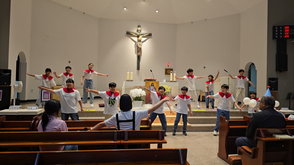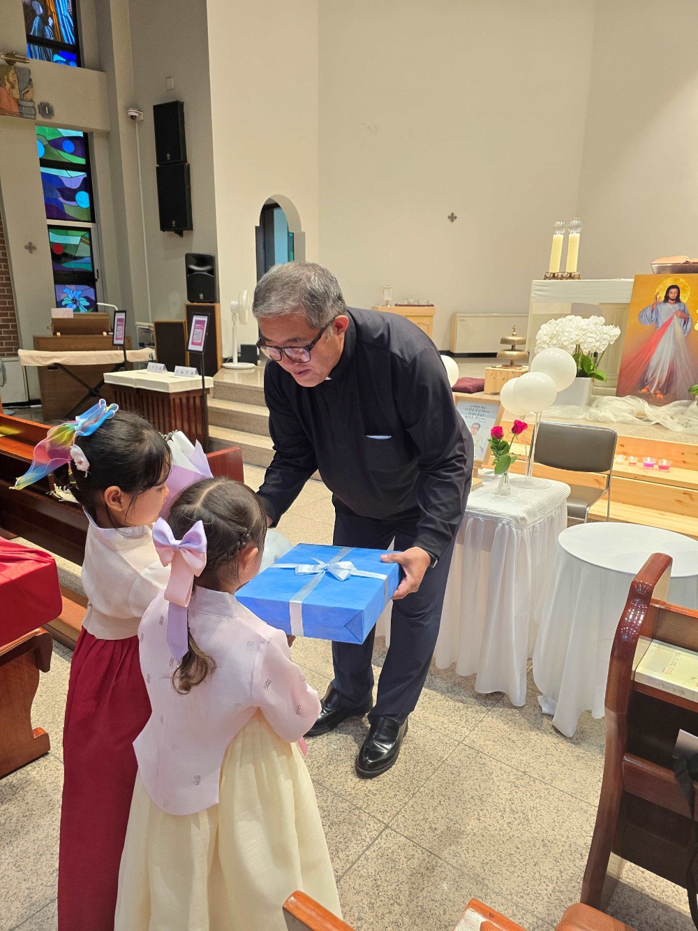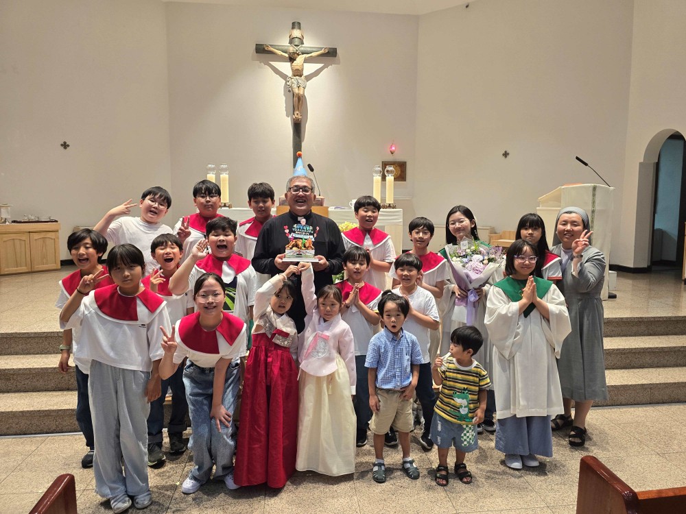 [주일학교행사] 본당신부님영명축일축하식 (2024년 6월 29일) 페이지 정보 작성자 우이성당 댓글 댓글 0건 조회Hit 1,041회 작성일Date 24-07-12 22:47 본문 2024년 6월 29일 성베드로와 바오로사도의 축일날 우리 본당 신부님이신 박준호 바오로 신부님의 영명축일 축하식을 주일학교 미사 후 가졌습니다. 모든 학생들과 학부모님들께서 축하와 감사의 마음을 담아 기쁘게 준비했고 행복하게 마무리했습니다. 본당신부님의 영명축일을 진심으로 축하드립니다! 목록 이전글견진자 100일 기념 축하 1 (2024년 7월 21일) 24.07.21 다음글[주일학교행사] 축구경기관람 (2024년 6월 21일) 24.07.11