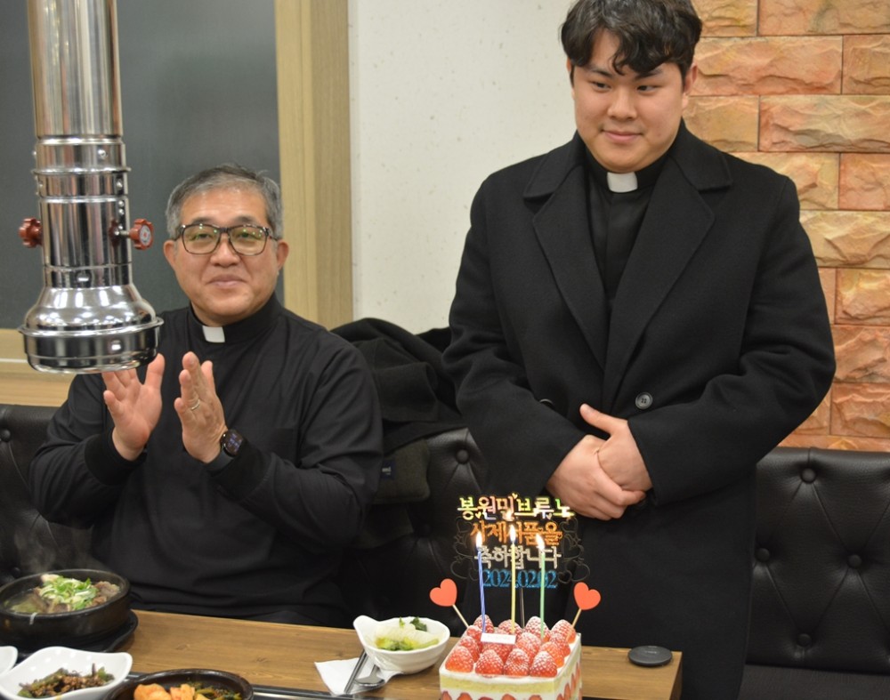 봉원민 브루노 사제 수품 축하연 1 (2024년 2월2일) 페이지 정보 작성자 우이성당2 댓글 댓글 0건 조회Hit 974회 작성일Date 24-02-07 01:14 본문 2024년 2월 2일(금) 사제 서품식을 마치고 함께 식사하며 기쁨을 나누는 자리를 마련해 주셨습니다. 장소 : 왕가 "봉원민 브루노 신부님의 사제 수품을 축하드립니다." 목록 이전글봉원민 브루노 사제 수품 축하연 2 (2024년 2월2일) 24.02.07 다음글봉원민 브루노 사제서품식 3 (2024년 2월2일) 24.02.06