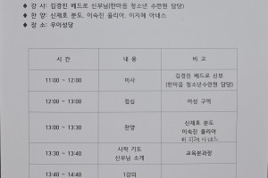 2025년 12월 7일 교중미사 후 점심으로 맛있는 국수 나눔 후 13시 부터 16시까지 찬양과 강의가 있었습니다.