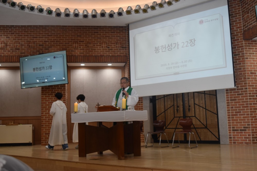 성경통독연수-2 페이지 정보 작성자 우이성당 댓글 댓글 0건 조회Hit 161회 작성일Date 25-09-01 12:27 본문 2025년 8월 29일 ~ 30일 1박 2일 일정으로 의정부 한마음 청소년 수련원으로 성경통독연수를 다녀왔습니다. 첫째 날에는 김현남 메히틸다 수녀님(성가소비녀회)의 멋진 아코디언 연주와 유쾌한 강의를 듣고 조별로 친교의 시간을 가졌습니다. 둘째 날에는 김경진 베드로 신부님(한마음 청소년 수련원)의 감동과 웃음이 넘치는 강의가 있었고 파견 미사 중에 소감 나눔 시간을 가졌습니다. 멋진 시간 마련해주신 신부님께 감사드립니다. 목록 이전글통독연수-3(조별사진) 25.09.01 다음글성경통독 연수(2025.8.29-30) 25.09.01
