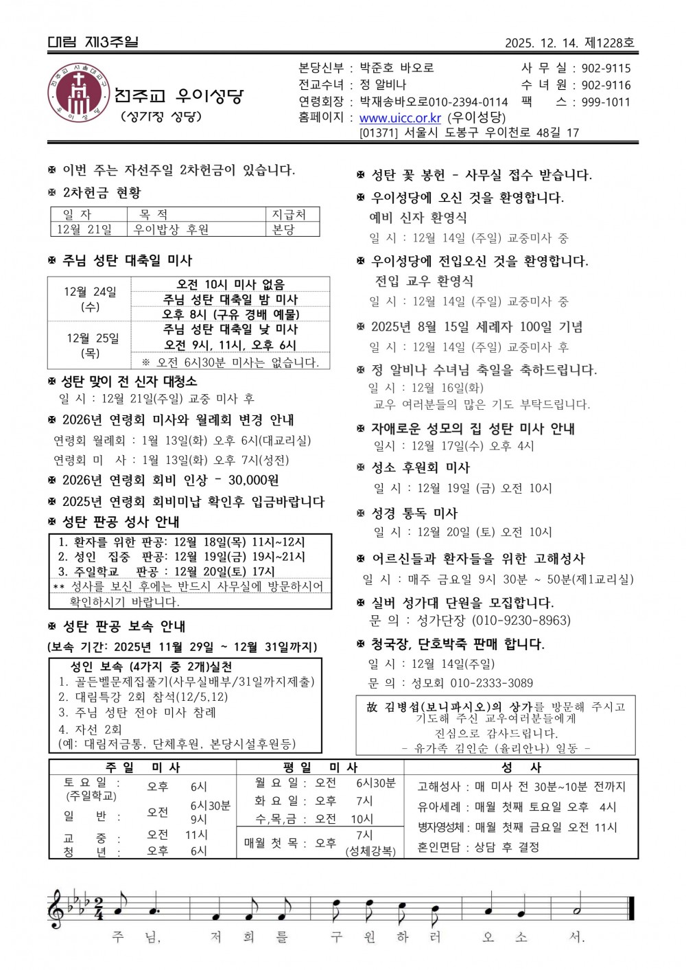 우이주보1228호-2025.12.14 페이지 정보 작성자 우이성당 댓글 댓글 0건 조회Hit 96회 작성일Date 25-12-13 12:54 본문 대림 제 3주일 목록 이전글우이주보1229호-202512.21 25.12.19 다음글우이주보1227호-2025.12.07 25.12.06