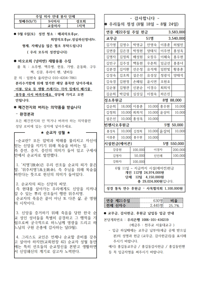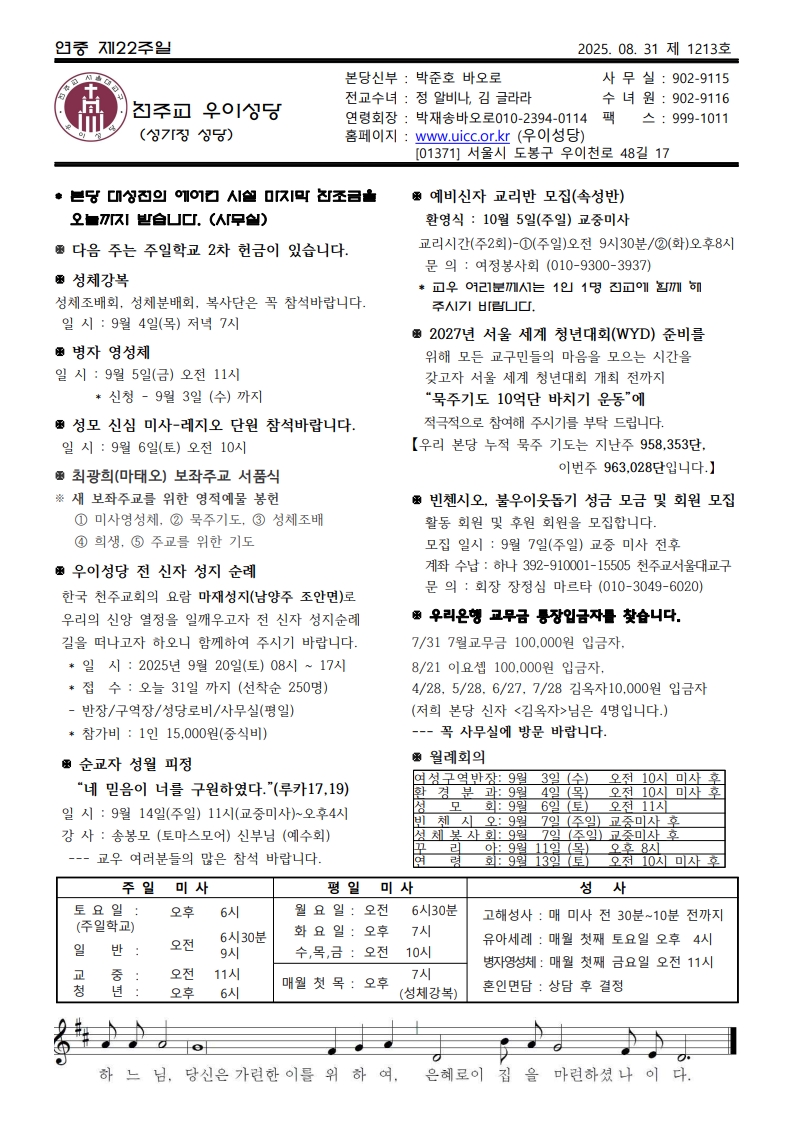 우이주보1213호-2025.08.31 페이지 정보 작성자 우이성당 댓글 댓글 0건 조회Hit 151회 작성일Date 25-08-30 14:49 본문 연중 제22주일 목록 이전글우이주보1214호-2025.09.07 25.09.05 다음글우이주보1212호-2025.08.24 25.08.23