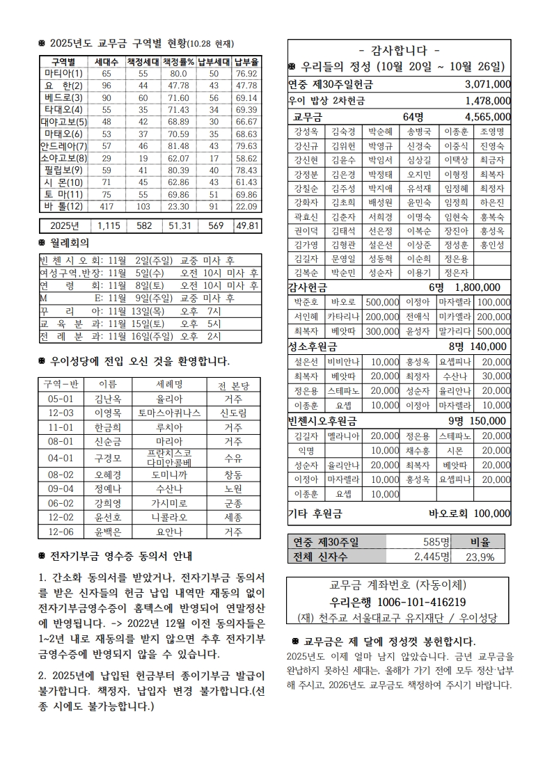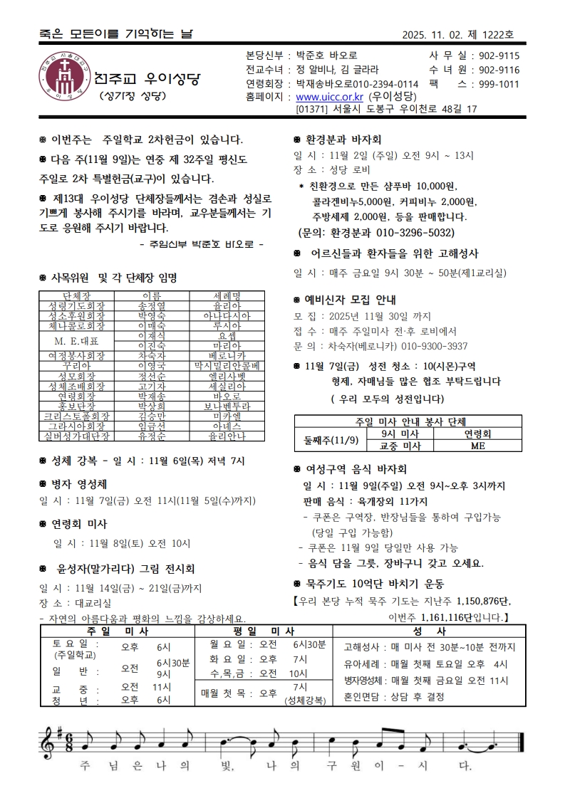우이주보1222호-2025.11.02 페이지 정보 작성자 우이성당 댓글 댓글 0건 조회Hit 122회 작성일Date 25-10-31 17:25 본문 죽은모든 이를 기억하는 날 목록 이전글우이주보1223호-2025.11.09 25.11.09 다음글우이주보1221호-2025.10.26 25.10.24