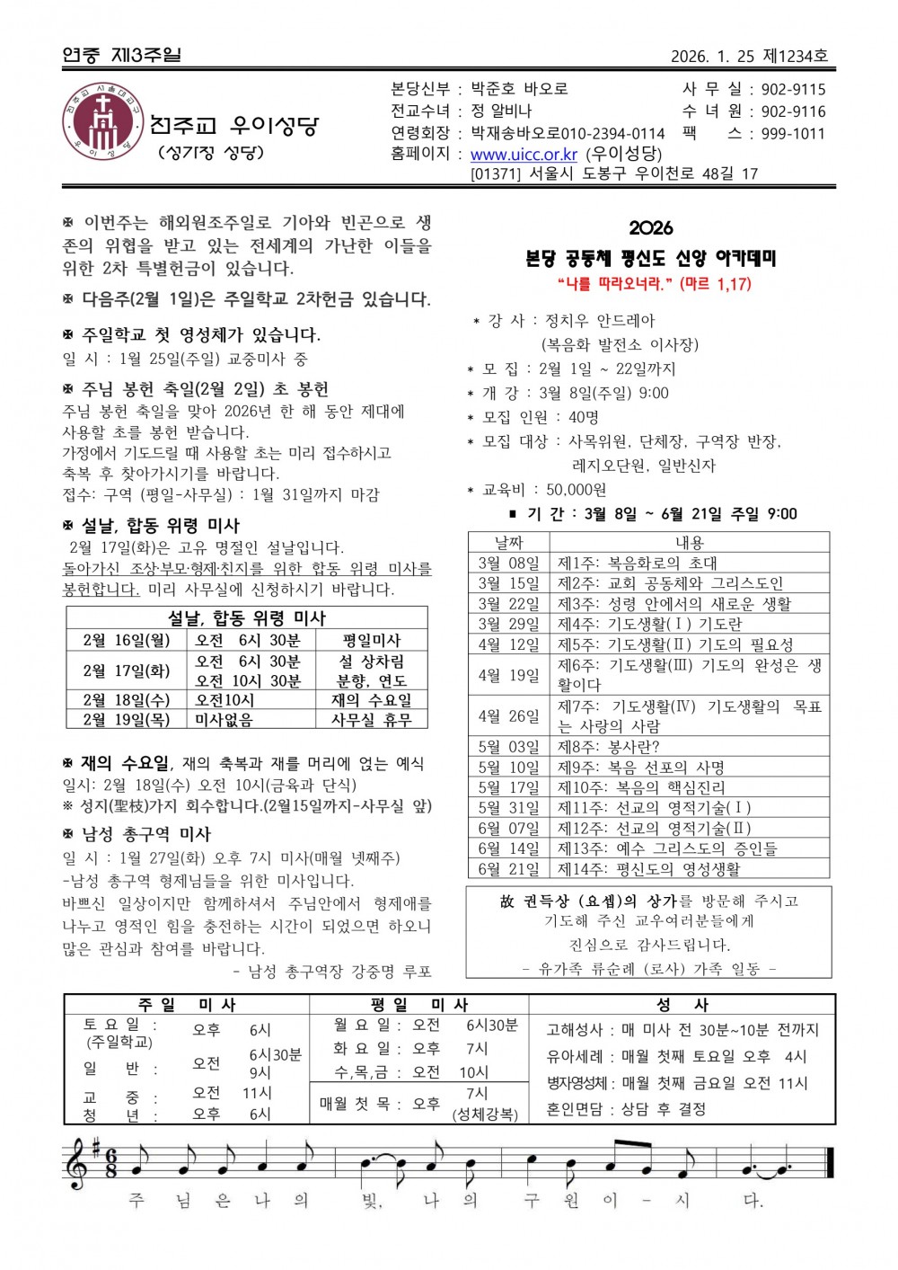 우이주보1234호-2026.01.25 페이지 정보 작성자 우이성당 댓글 댓글 0건 조회Hit 19회 작성일Date 26-01-23 08:53 본문 연중 제3주일 목록 다음글우이주보1233호-2026.01.18 26.01.18