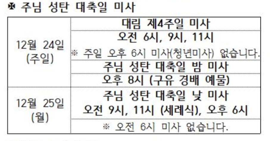 주님 성탄 대축일 미사 안내
